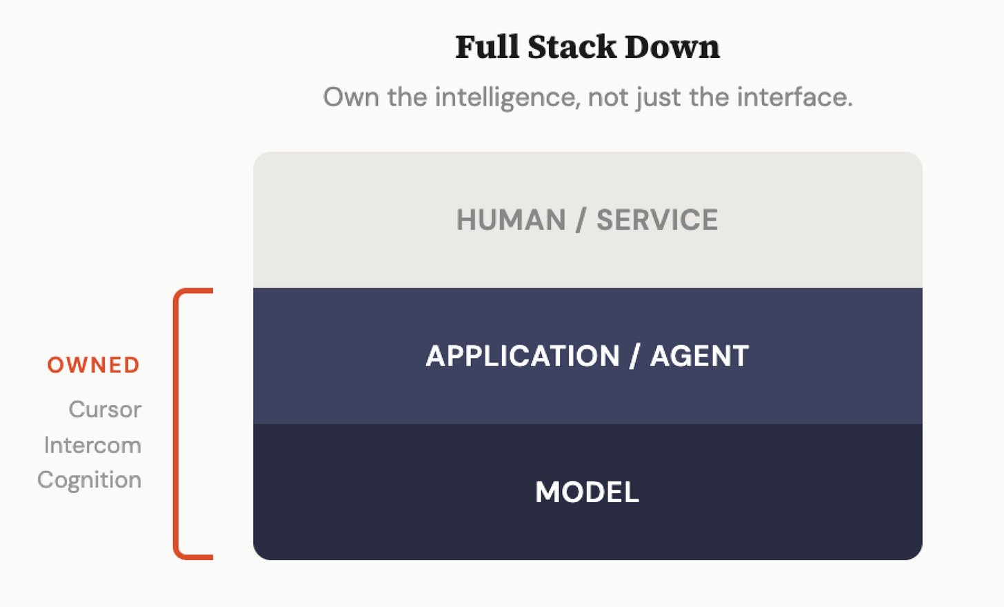 Cursor, Intercom, Cognition, Harvey, Sierra, and are increasingly trying to shape, tune, route, and in some cases train the intelligence itself around a specific domain.
