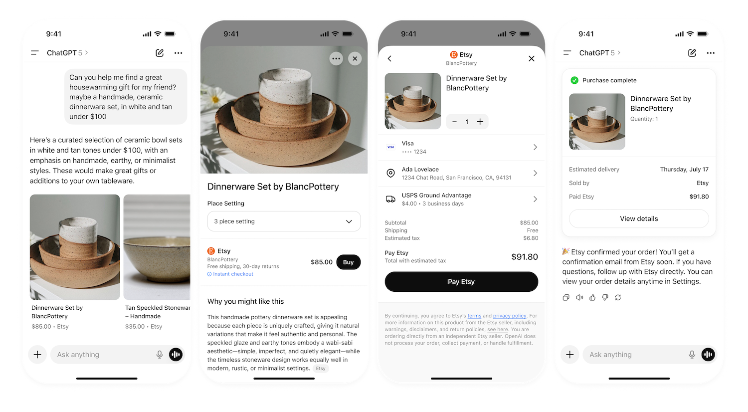 The other announcement was related to affiliate commerce. ChatGPT will start supporting direct native checkout of products across Shopify, Walmart and Etsy among other platforms. As part of that, OpenAI will take a 4% cut of any transaction for merchants that choose to allow native checkout (for now, just from Shopify merchants).