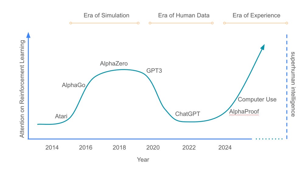 Over the last year, we’ve clearly entered a new era where models improve less from static human data and more from real experience. By “experience” I mean these models taking actions in environments, observing outcomes, getting feedback, and then getting better. When you look at what the frontier labs are doing, it increasingly seems like scaling reinforcement learning is how that experience gets converted into improvement.