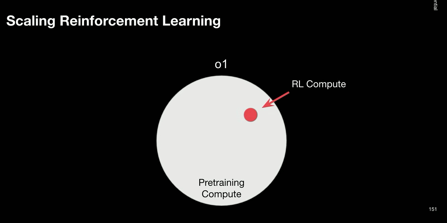 We added some reinforcement learning compute for o1 … o3 maybe had a little bit more RL compute. At some point in the future maybe we’ll have a lot of RL compute and then at some far point in the future maybe we’ll have just like be totally dominated and crushed by RL compute - Dan Roberts
