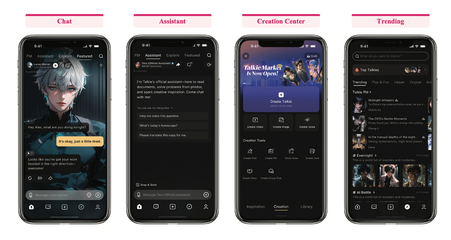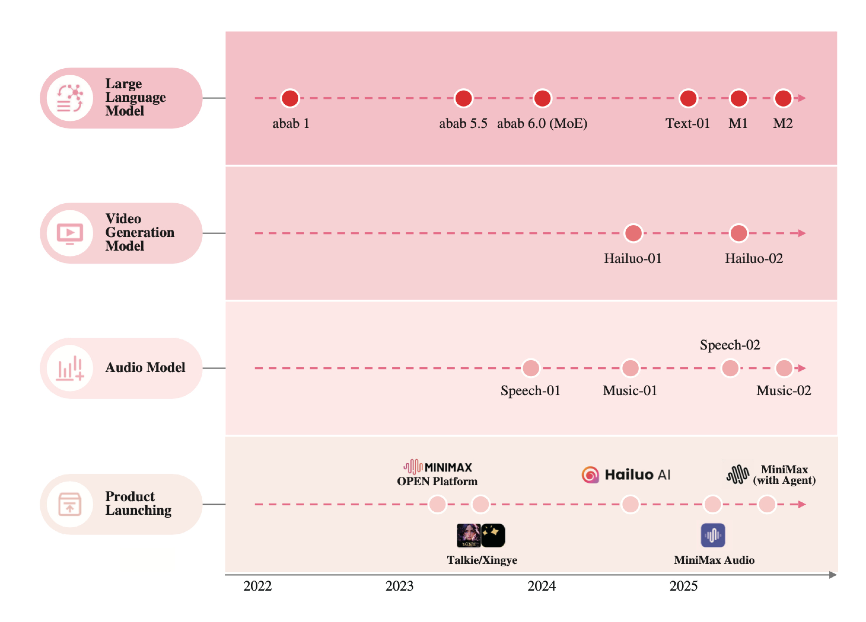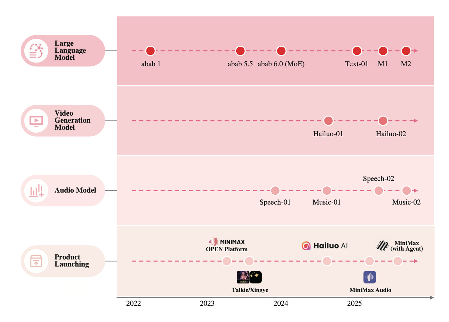 MiniMax is a product-first model company that was founded in December 2021. They still talk about their core model suite as below, but what jumps off the page is the multi-modality and the consumer-facing surfaces they have built. The filing discusses their lineup of models that spans text models and models for video, speech, and music generation. But the way these are primarily delivered is via consumer apps - Hailuo AI, Talkie (and Xingye), MiniMax, and MiniMax Audio. MiniMax is trying to express model capability through native products that can acquire users and monetize directly, while also running an Open Platform that can serve developers and enterprises.